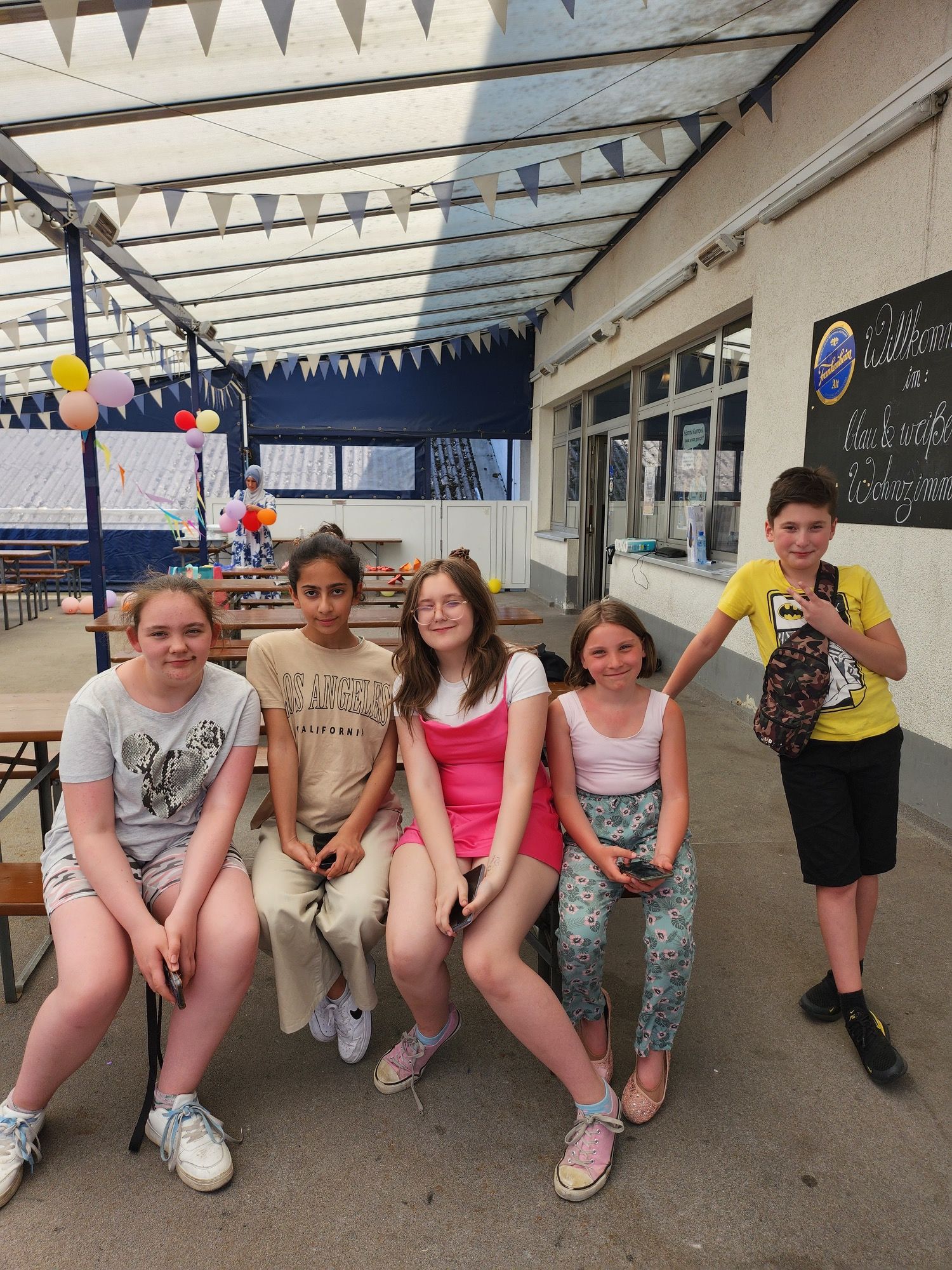 Am Ende des Projekts wurde ein kleines Abschlussfest veranstaltet, zu dem alle Kinder, ihre Eltern und Geschwister eingeladen wurden. Das Fest fand kurz vor den Sommerferien 2023 statt - bei schönstem Sonnenschein. Es gab eine Hüpfburg, die Kinder und Jugendlichen haben selbst Waffeln, Reibekuchen, Apfelmus, Fruchtsalat und Limonade gemacht, das Zelt dekoriert und sich um die Gäste gekümmert. Als Geschenk haben sie eine Urkunde, eine Kochschürze sowie das Kochbuch erhalten, das alle Rezepte beinhaltete, die gemeinsam mit den Gruppen gekocht wurden.